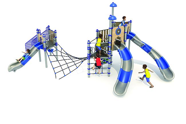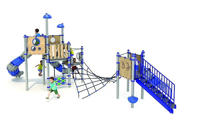 Siége rotomouléEscalierFilet de grimpePanneaux ludiquesPont filetToboggan rotomouléToboggan spirale rotomoulé
