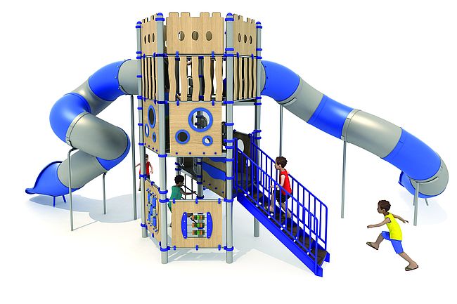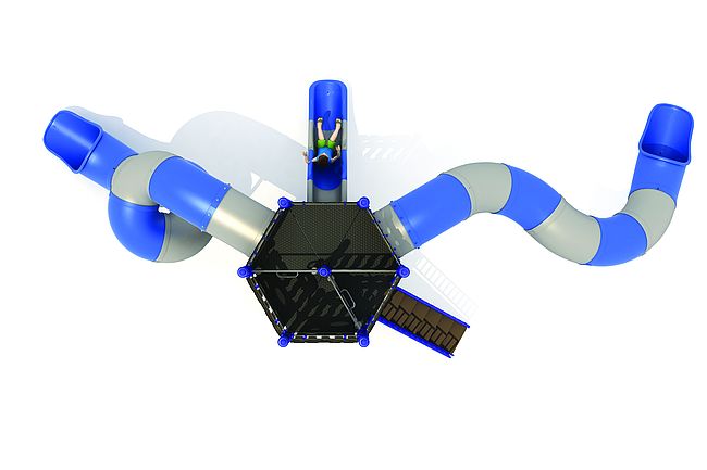 Structure géanteEscalierEscalier transfertFilet de grimpePanneaux ludiquesToboggan tunnel rotomouléToboggan rotomoulé