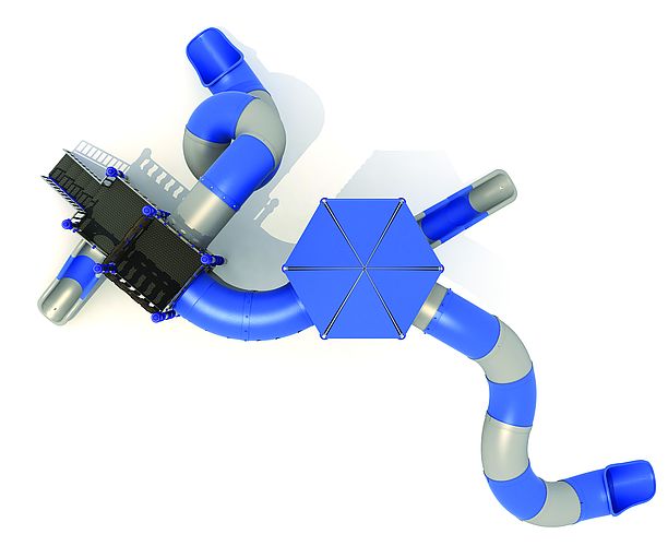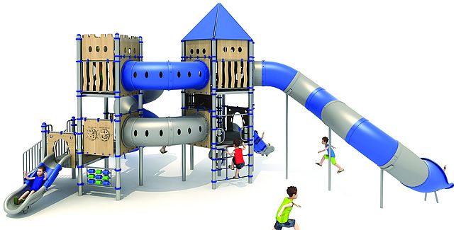 Structure géanteEscalierEscalier transfertFilet de grimpePanneaux ludiquesTunnelToboggan spirale rotomouléToboggan rotomoulé