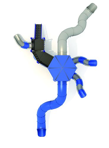 Structure géanteEchelle d'accèsEscalierEscalier transfertmarche d'accèsPanneaux ludiquesToboggan tunnel rotomouléToboggan spirale rotomoulé