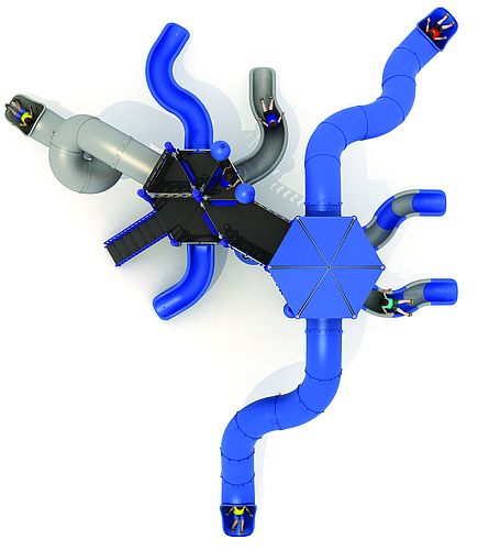Structure géanteEchelle d'accèsEscalierEscalier transfertmarche d'accèsPanneaux ludiquesToboggan tunnel rotomouléToboggan spirale rotomoulé