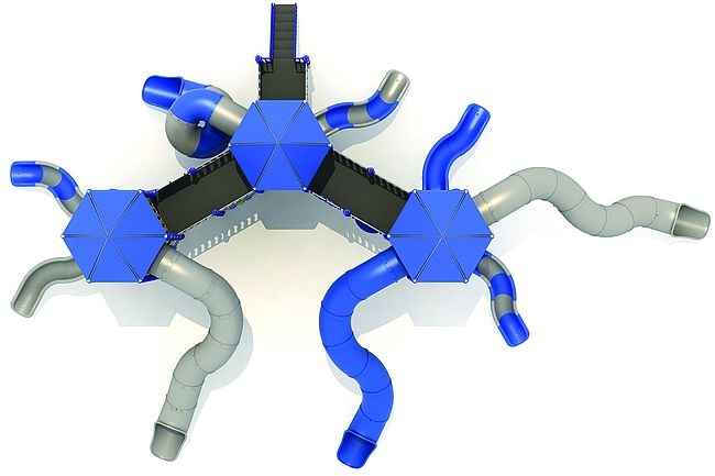 Structure géanteEchelle d'accèsEscalier transfertmarche d'accèsPanneaux ludiquesToboggan spirale rotomouléToboggan tunnel rotomoulé