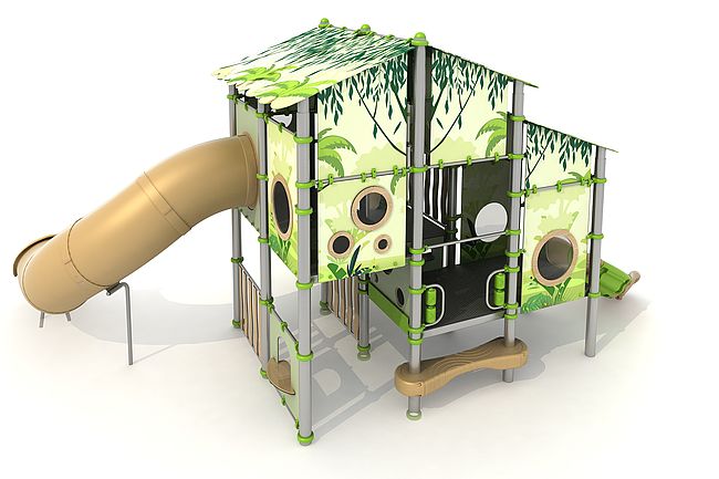 Jeux à thèmeComptoirEchelle d'accèsmarche d'accèsToboggan spirale rotomouléToboggan tunnel rotomoulé