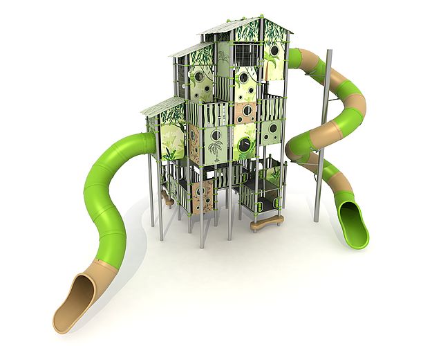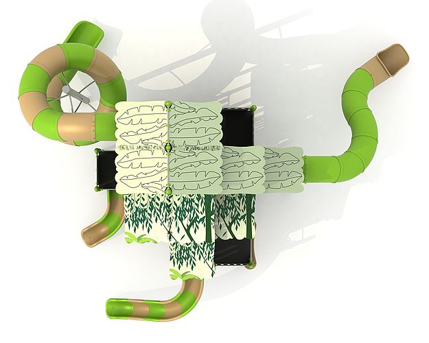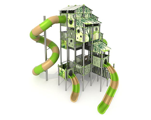 Jeux à thèmeStructure géanteEchelle d'accèsmarche d'accèsPanneaux ludiquesEscalier transfertToboggan spirale rotomouléToboggan tunnel rotomoulé
