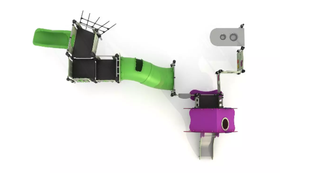 CabaneFilet de grimpemarche d'accèsPanneaux ludiquesTable à jouerTunnelTobogganToboggan rotomoulé