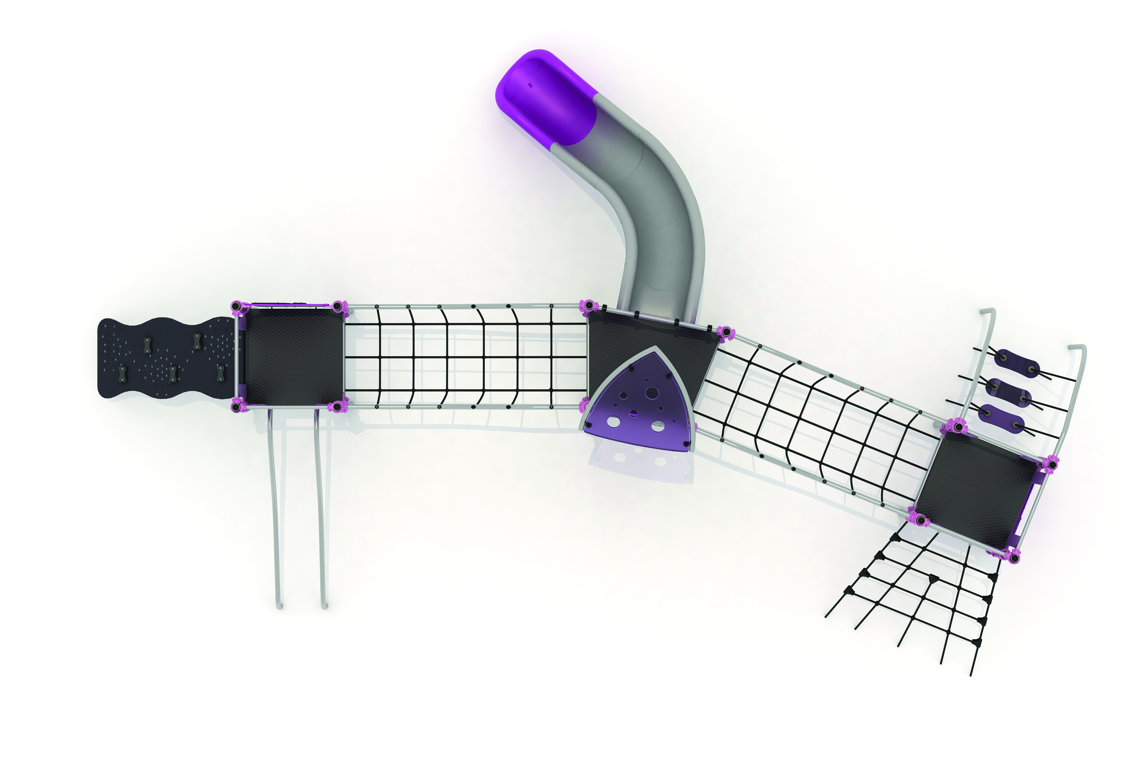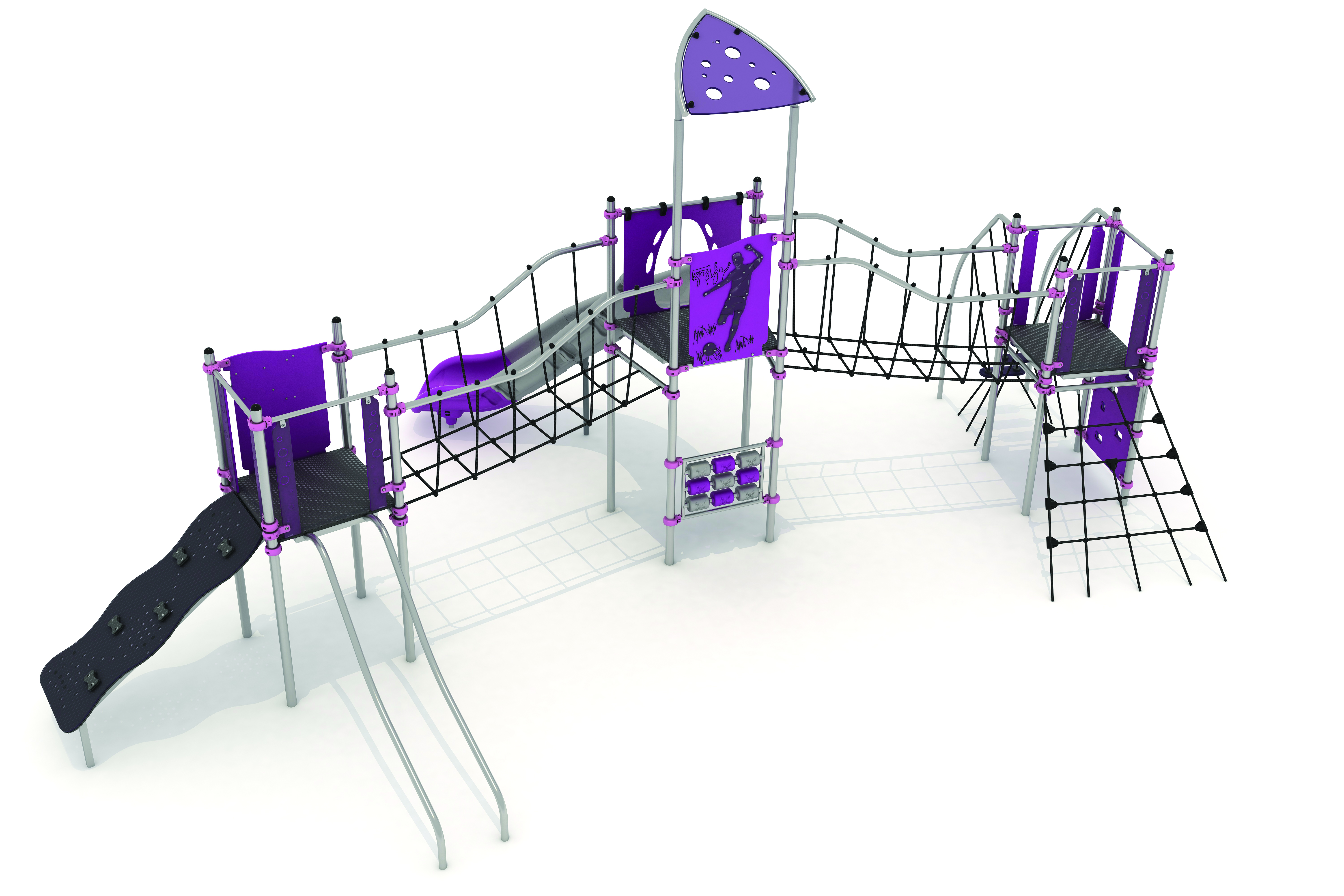 Barre de glisseEchelle de cordeFilet de grimpeMur d'escaladePanneaux ludiquesPlan incliné d'escaladePont obliqueToboggan rotomoulé
