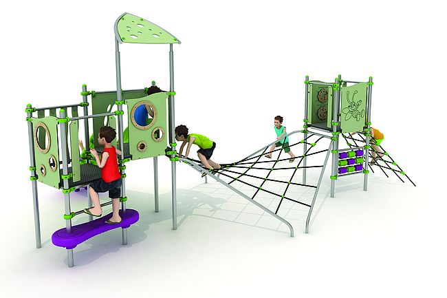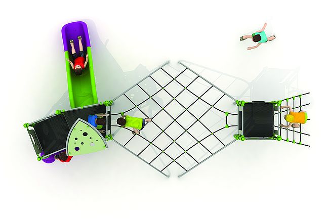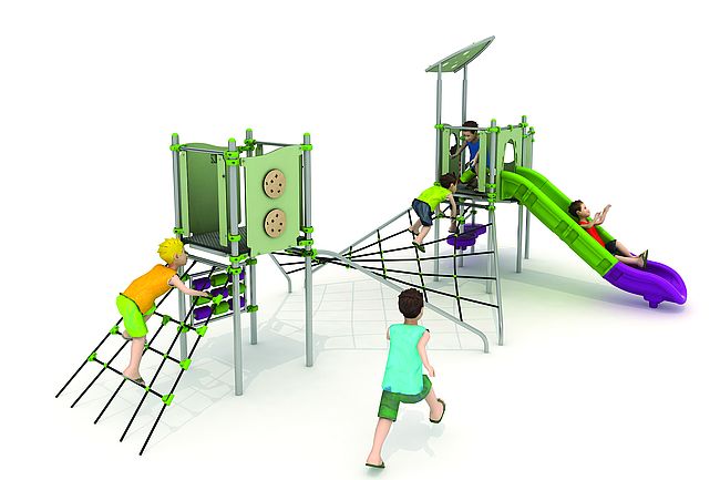 Echelle d'accèsFilet de grimpemarche d'accèsPanneaux ludiquesPont filetToboggan rotomoulé