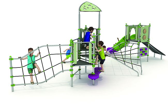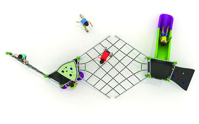Echelle de cordeFilet de grimpemarche d'accèsPlan incliné d'escaladePanneaux ludiquesPont filetToboggan rotomoulé