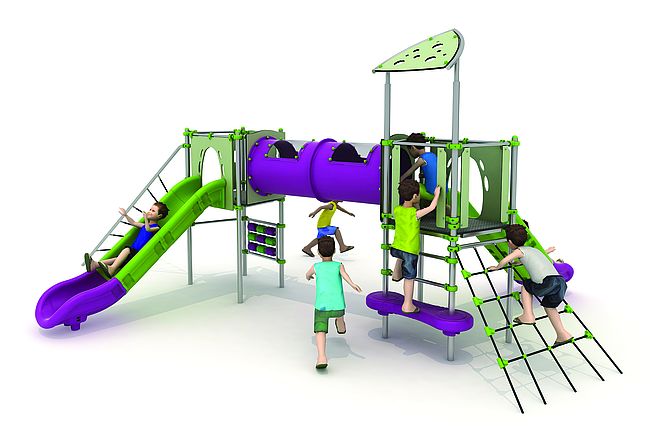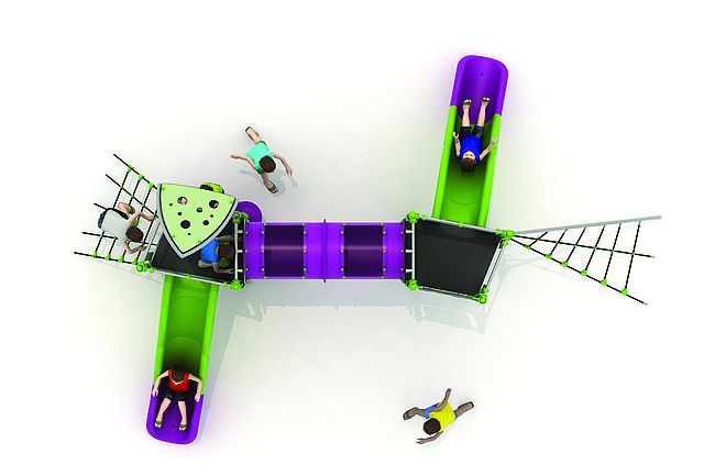 Echelle d'accèsFilet de grimpeEchelle obliquemarche d'accèsPanneaux ludiquesBarre fixeTunnelToboggan rotomoulé