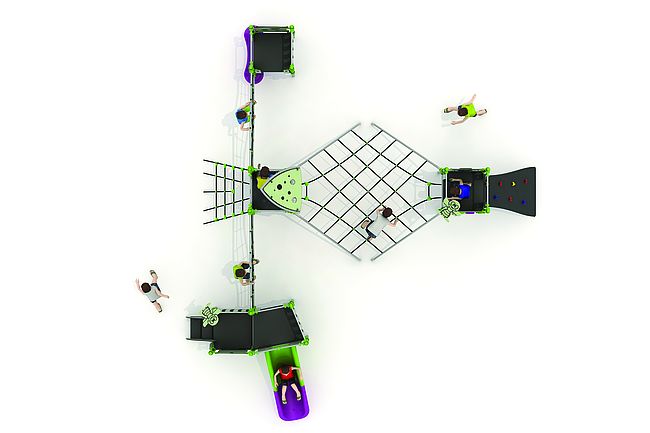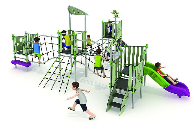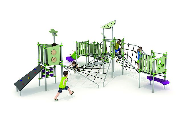 Echelle d'accèsFilet de grimpeEscaliermarche d'accèsPanneaux ludiquesPlan incliné d'escaladePont filetToboggan rotomoulé