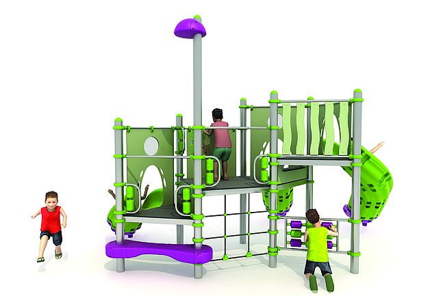 Filet de grimpemarche d'accèsPanneaux ludiquesToboggan rotomouléToboggan spirale rotomoulé