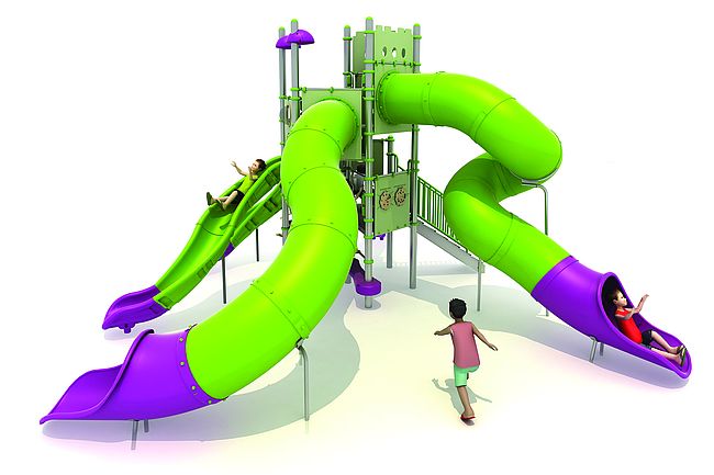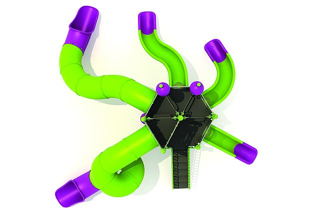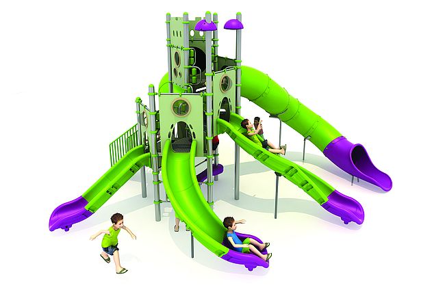 Structure géanteEscalierEchelle d'accèsmarche d'accèsPanneaux ludiquesEscalier transfertToboggan rotomouléToboggan spirale rotomouléToboggan tunnel rotomoulé