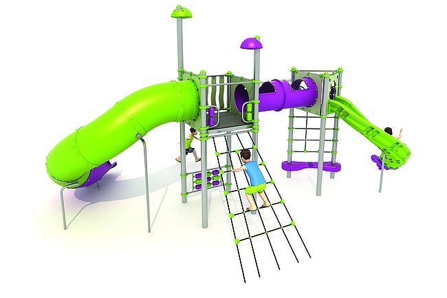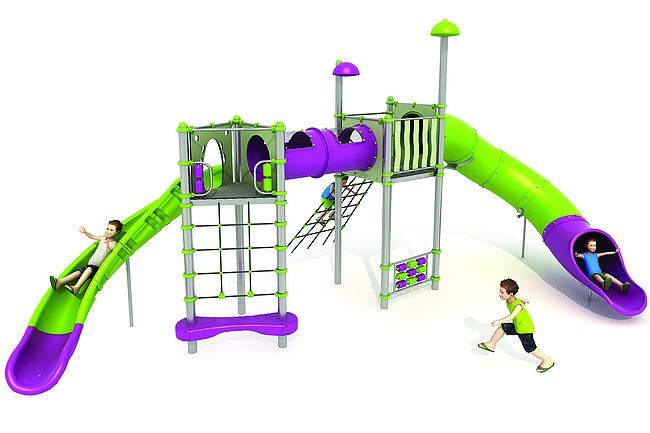 Filet de grimpemarche d'accèsPanneaux ludiquesTunnelToboggan spirale rotomouléToboggan tunnel rotomoulé