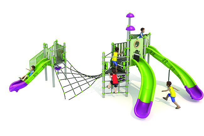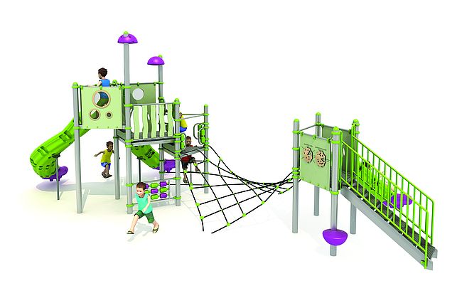 EscalierSiége rotomouléFilet de grimpePanneaux ludiquesPont filetToboggan rotomouléToboggan spirale rotomoulé