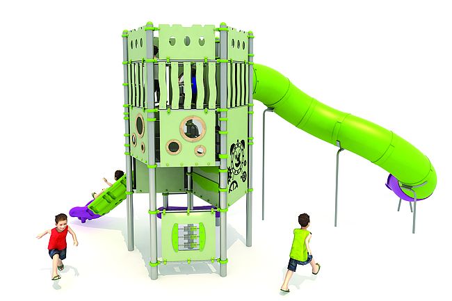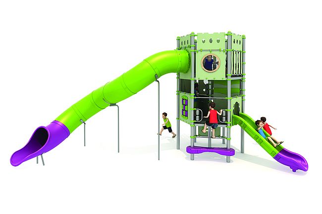 Structure géanteEchelle d'accèsEscalier transfertmarche d'accèsPanneaux ludiquesToboggan rotomouléToboggan tunnel rotomoulé