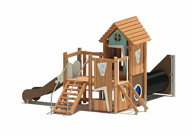EscalierFilet de grimpePanneaux ludiquesCabaneTunnelToboggan