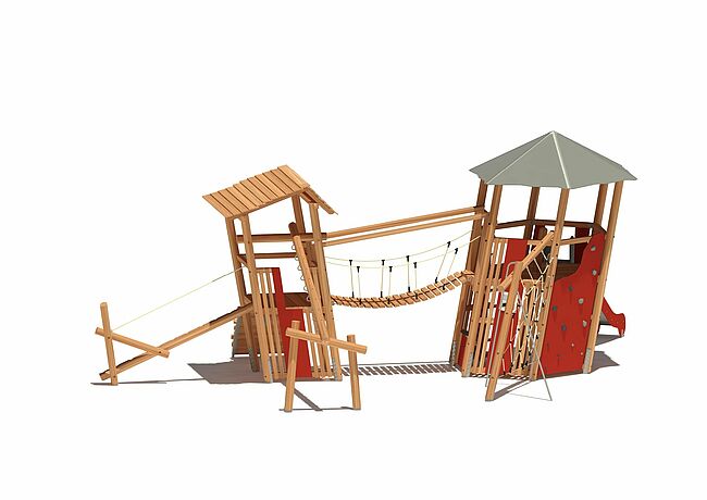 Echelle d'accèsEchelle verticaleFilet de grimpeBarre de pompierMur d'escaladePlan incliné d'escaladeEchelle obliquePoignées de suspentePont souplePoutre d'équilibreToboggan