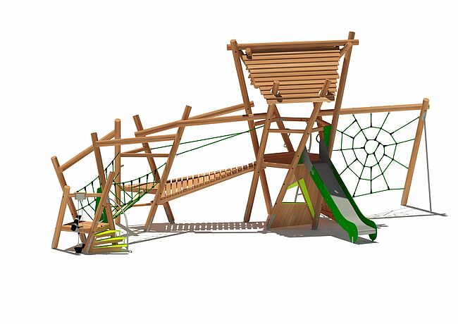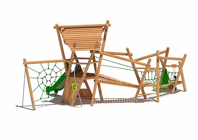 Barre de pompierEscalierFilet araignéeJeux de sablePont filetPont obliqueToboggan