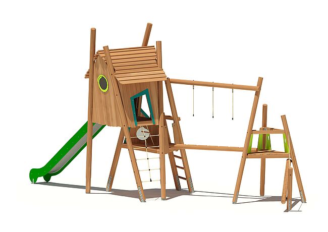 Barre de pompierEchelle d'accèsFilet de grimpePoignées de suspentePassage de rivièrePoutre d'équilibreToboggan