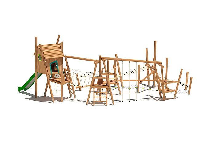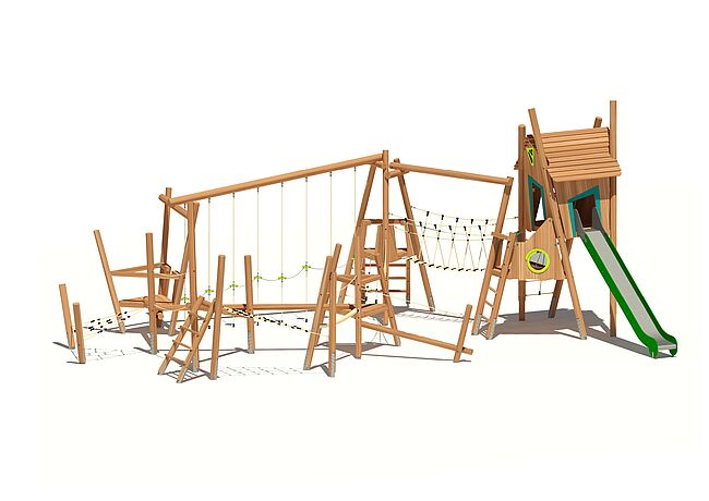 Structure de grimpeStructure d'équilibreEchelle d'accèsEchelle obliqueFilet de grimpeFilet InclinéPassage de rivièrePont filetToboggan