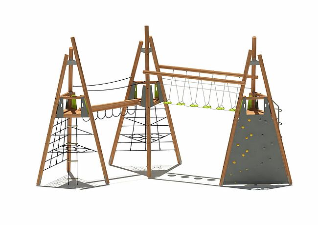 Echelle verticaleEchelle de cordeFilet de grimpeFilet InclinéMur d'escaladeHamacPont souplePont fixePoignées de suspente