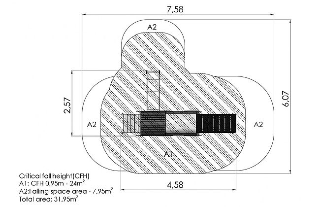 Hauteur de chute libre : 95 cm