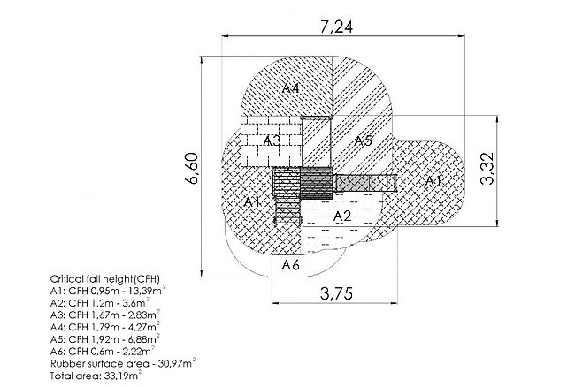 Zone de sécurité : 663 x 725 cm