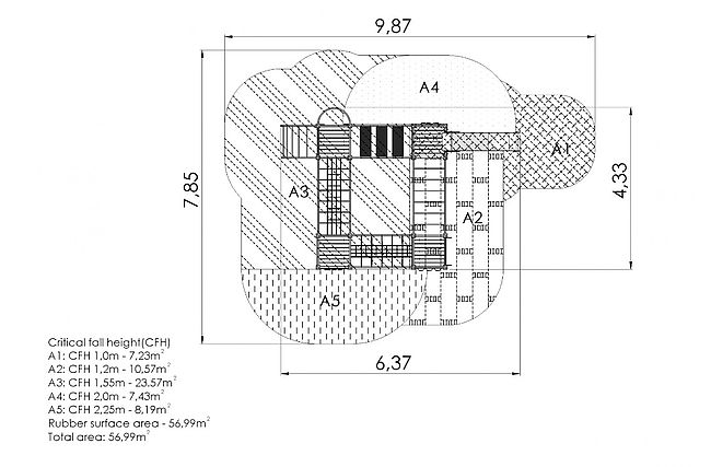 Zone de sécurité : 785 x 987 cm