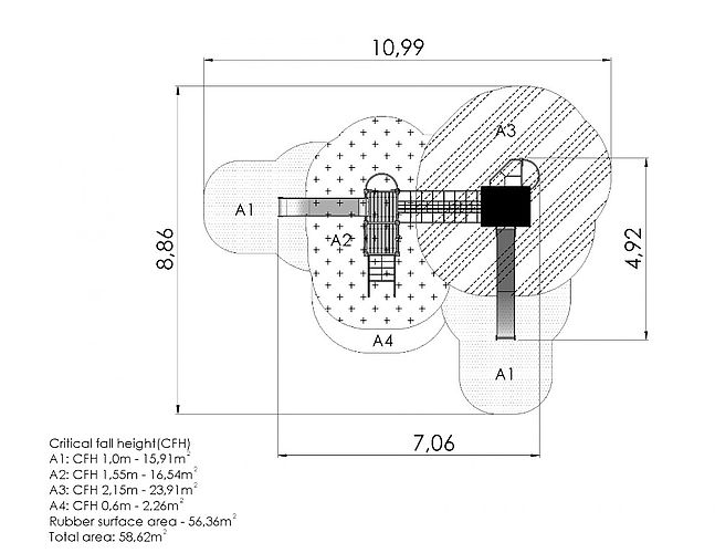 Hauteur de chute libre : 215 cm
