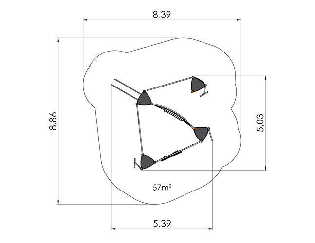 Zone de sécurité : 839 x 886 cm