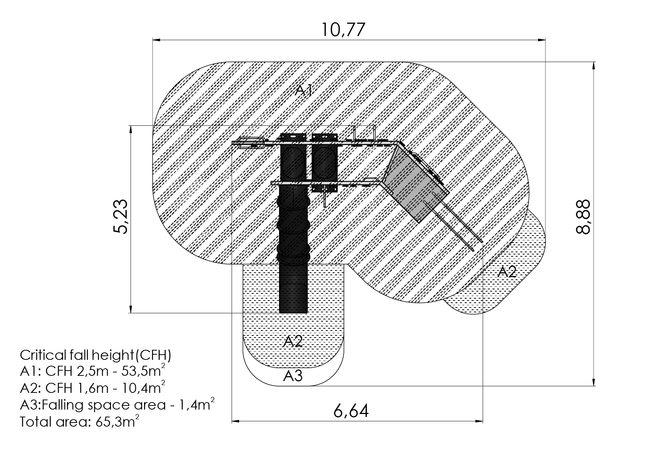 Hauteur de chute libre : 250 cm