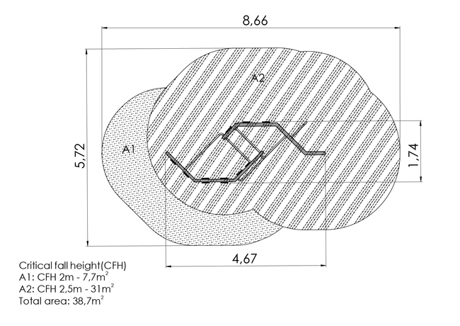 Zone de sécurité : 572 x 866 cm